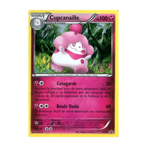 Découvrez Cupcanaille (xypr015), une carte Pokémon de l’extension Promos XY, provenant du bloc XY. Idéale pour compléter votre collection, cette carte Promo plaira autant aux collectionneurs qu’aux joueurs.