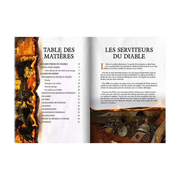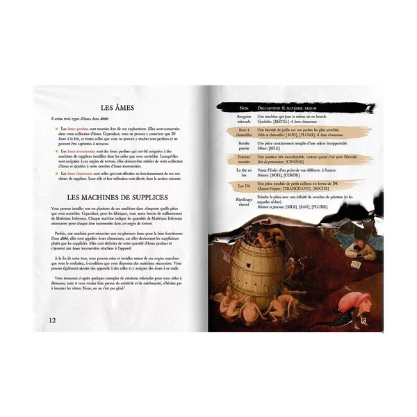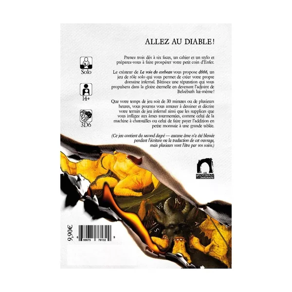 Que votre temps de jeu soit de 30 minutes ou de plusieurs heures, vous pourrez vous amuser à dessiner et décrire votre terrain de jeu infernal ainsi que les supplices que vous infligez aux âmes tourmentées, comme celui de la machine à chatouilles ou celui de faire payer l’addition en petite monnaie à une grande tablée.
