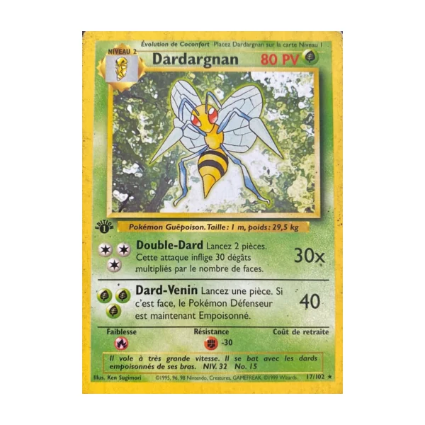 Découvrez Dardargnan (bs017), une carte Pokémon de l’extension Set de Base, provenant du bloc Wizards. Idéale pour compléter votre collection, cette carte Rare plaira autant aux collectionneurs qu’aux joueurs.