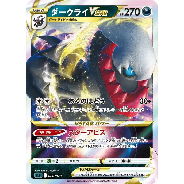 Découvrez Darkrai (sld008), une carte Pokémon de l’extension Sword & Shield Starter Set Darkrai VSTAR, provenant du bloc . Idéale pour compléter votre collection, cette carte Fixed plaira autant aux collectionneurs qu’aux joueurs.