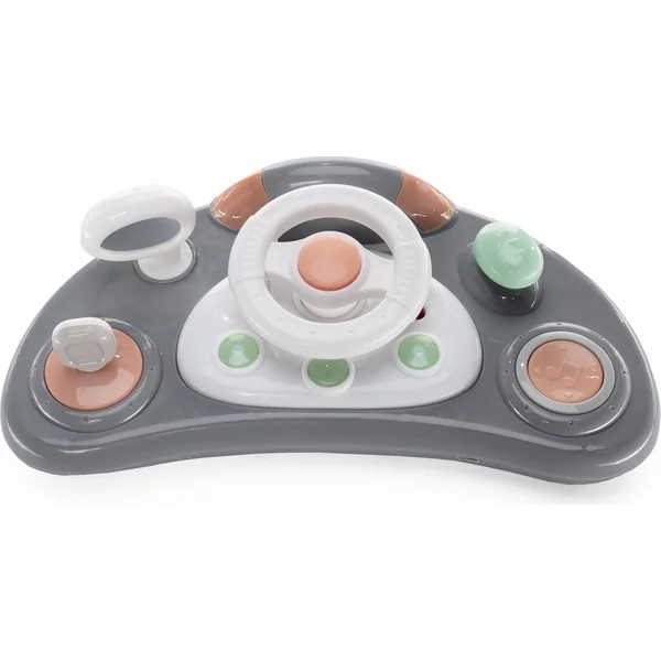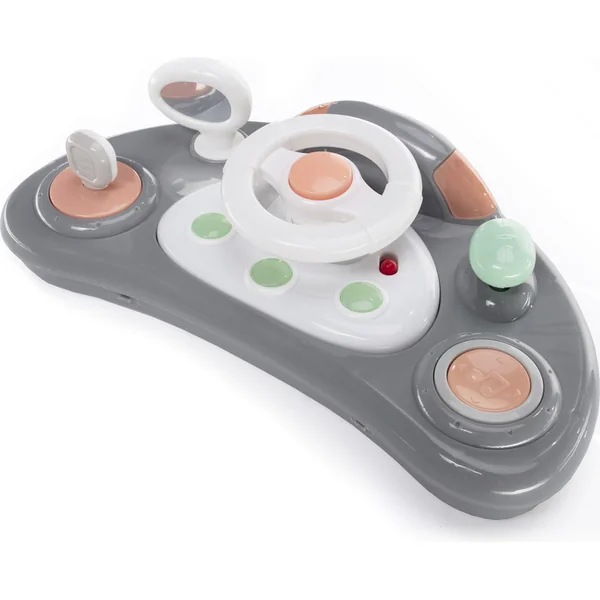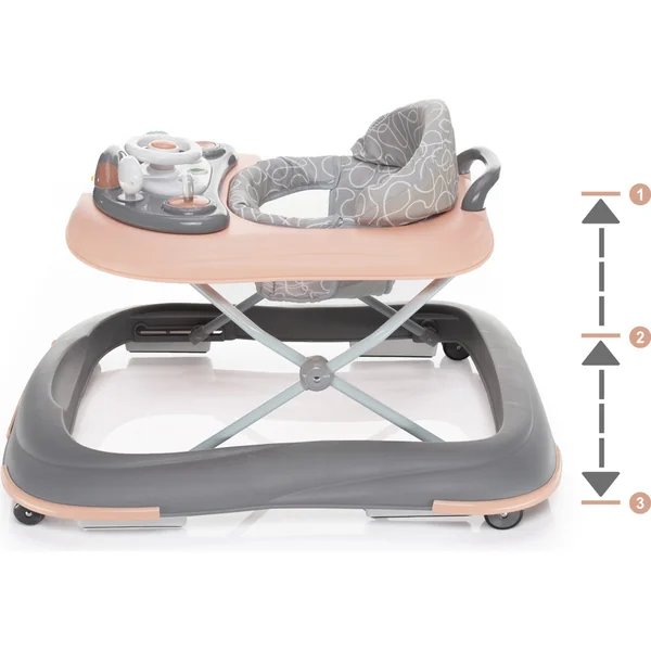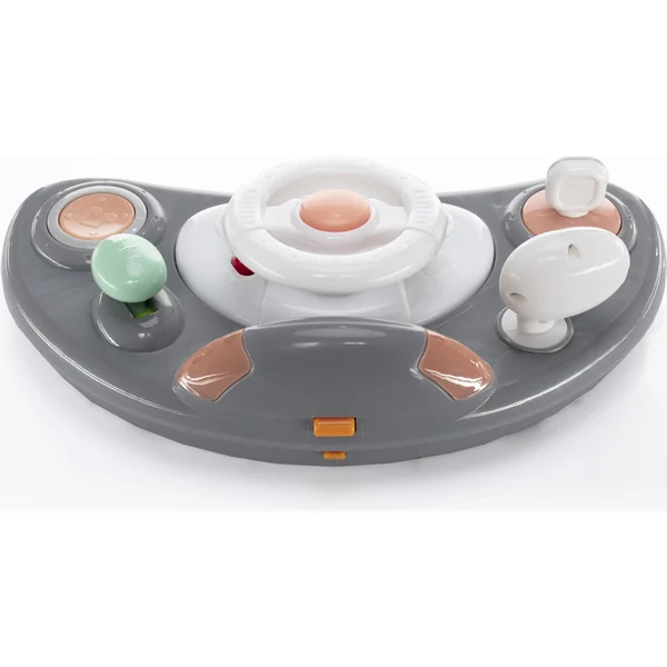 Pour que l’utilisation de la poussette Fiesta soit la plus confortable possible pour les enfants, la hauteur du siège peut être réglée sur 3 positions. De plus, pour s’exercer aux premiers pas, un arceau est également placé à l’arrière de la poussette Fiesta. Un tableau interactif amovible s’occupe du divertissement de l’enfant, qui, en plus des jouets mécaniques, dispose également de mélodies, de sons de voiture et de lumières. La poussette Fiesta aide donc non seulement à pratiquer la marche, mais occupe l’enfant de manière amusante et développe tous ses sens, y compris la motricité fine.