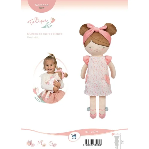 DeCuevas 21074 Poupée en peluche Tulipe 2025 – 36 cm