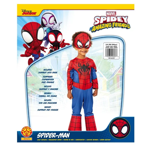 Une combinaison en jersey imprimée rouge et bleue avec logo Spider-Man sur le buste.