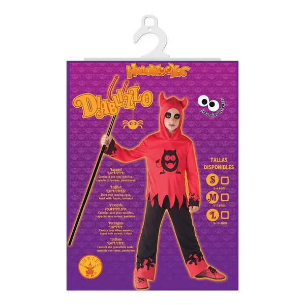 Déguisement diablito taille L comprenant une combinaison avec yeux mobiles et une capuche.
