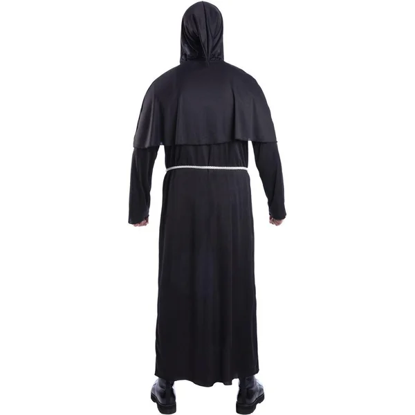 Une robe de prêtre avec capuche, une paire de gants, un collier et une ceinture cordon