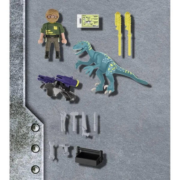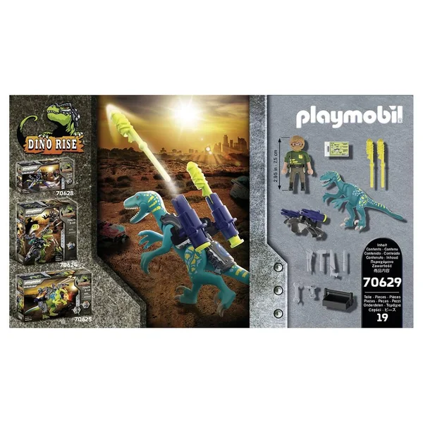 Les Dinos étaient les créatures les plus dangereuses du monde avant que les Hommes n’apprennent à les maîtriser. Ils sont maintenant équipés d’armures pour se défendre et être plus efficaces en situation de combat. Les Dinos se battent désormais aux côtés des humains afin d’affronter la menace des robots géants qui pèse sur le monde. Ce Deinonychus est extrêmement intelligent. Grâce à son petit gabarit, il est capable de se faufiler dans les endroits difficiles d’accès pour récupérer des informations en terrain ennemi ! Contient un personnage.