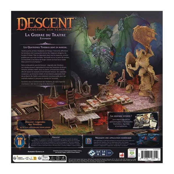 Dans The Betrayer’s War , le deuxième Act of Descent: Legends of the Dark, un à quatre joueurs poursuivent le voyage de Brynn, Chance, Galaden, Kehli, Syrus et Vaerix alors qu’ils luttent pour sauver leur royaume du mal qui menace son héritage . Chaque héros gagne une nouvelle carte de héros ainsi qu’une pléthore de nouvelles capacités, et avec de nouveaux ennemis à combattre et une nouvelle histoire à raconter, The Betrayer’s War est une extension essentielle pour quiconque souhaite plonger une fois de plus dans Terrinoth.