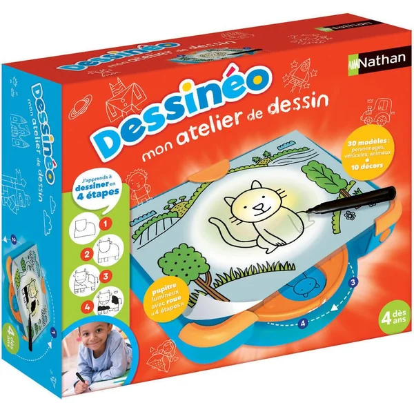 Le dessineo atelier de dessin de Nathan est une plateforme lumineuse qui permet aux enfants à partir de 4 ans de faire leurs premiers pas dans le monde de l’art. Cet atelier de dessin est conçu pour guider les jeunes artistes dans la réalisation de dessins étape par étape, en partant de formes simples.