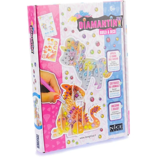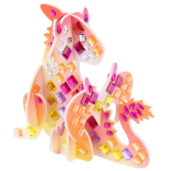 Deux jolies figurines colorées en carton à décorer avec des pierres précieuses spéciales et à construire pour obtenir des animaux mignons pour enrichir vos espaces.