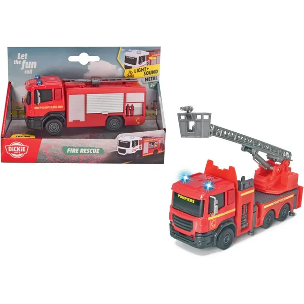 Camion de pompiers Scania de 17 cm à roue libre avec fonctions sonores et lumineuses.