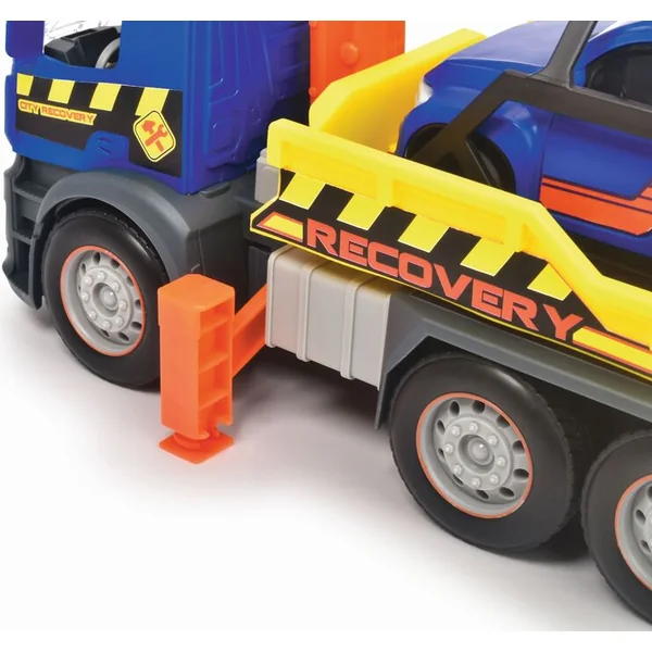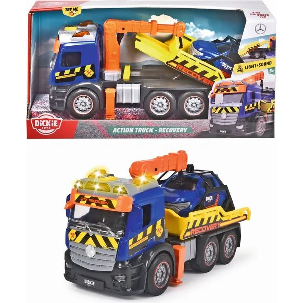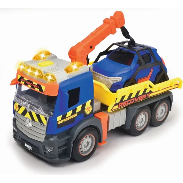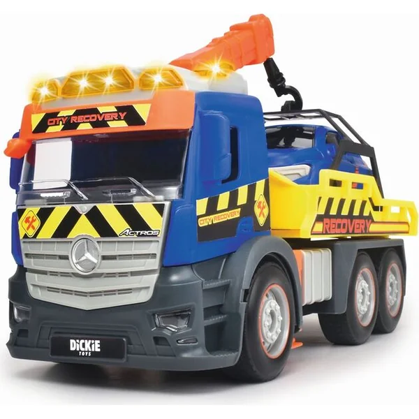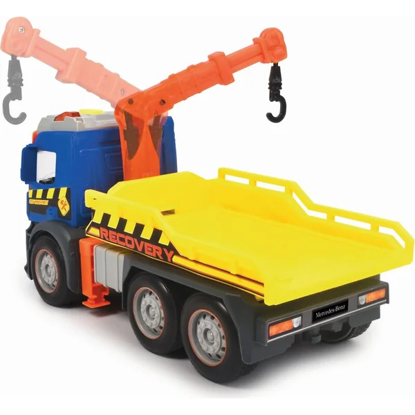 Véhicule de remorquage Mercedes à inertie avec effets lumineux et sonores et pièces mobiles, longueur 26 cm.