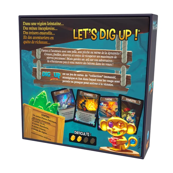 Soyez le plus malin pour récupérer un maximum de pierres précieuses de votre couleur, d’idoles ou le plus fourbe pour empêcher les autres d’y arriver. Mais attention, dès qu’une Mine est entièrement complétée la partie prend fin.