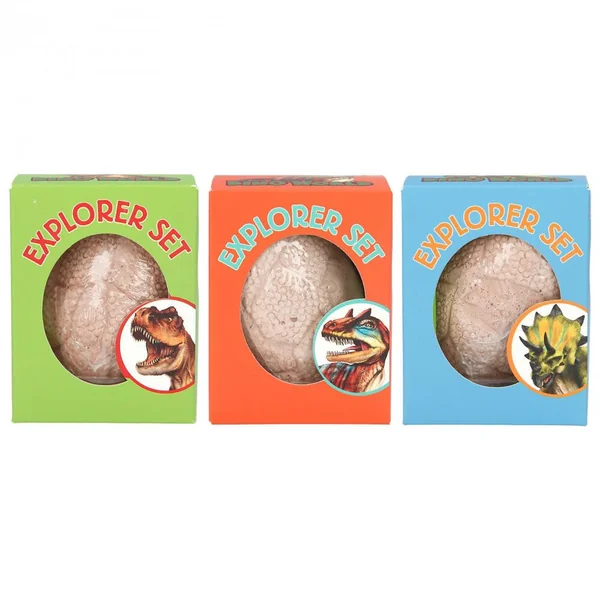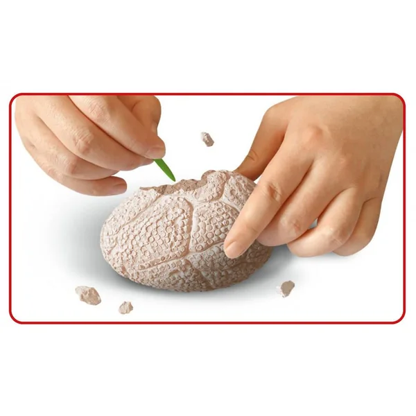 Pour les paléontologues en devenir : grâce au burin du lot de fouilles, il est possible de libérer une petite figurine de dinosaure de l’œuf en plâtre.