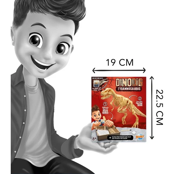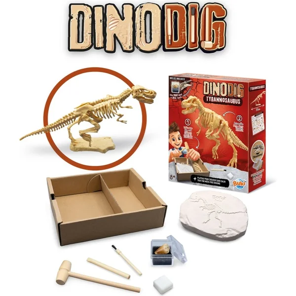 Déterre le squelette du dinosaur Tyrannosaure d’un bloc de plâtre et assemble ton propre modèle de jusqu’à 20 cm de long.