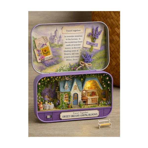 Dans cette boîte en alu refermable se déploie un paysage typique de la Provence : une charmante maison au toit bleu se dresse au milieu des bosquets de lavande, baignée de lumière et de senteurs du Sud.