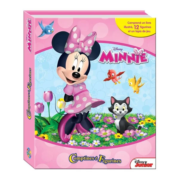 Un livre-histoire avec tes héros préférés réunis dans un seul coffret ! Livre cartonné de 10 pages, 10 figurines Disney Minnie et un grand tapis de jeu plastifié. La collection Comptines et figurines associe lecture et jeu dans un même coffret. L’enfant laisse libre cours à son imagination en plaçant les figurines sur le tapis géant. Facile à transporter : les figurines et le tapis de jeu se rangent dans le coffret.
