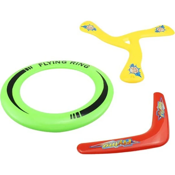Profitez de l’amusement dans le parc, à la plage ou dans le jardin avec cet ensemble de 3 disques volants. L’ensemble comprend 3 frisbees complètement différents. Un cercle volant, un boomerang et un boomerang triple pour encore plus de plaisir. Chaque disque volant est d’une couleur vive différente.