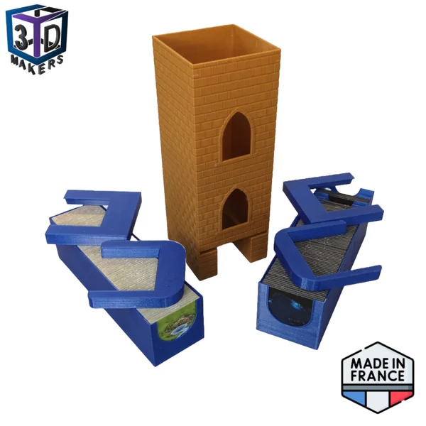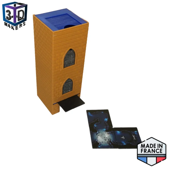 Le distributeur de tuiles universel permet de tirer simplement les tuiles lors de votre partie, mais aussi de garder les tuiles bien rangées dans leur boite entre deux parties!
