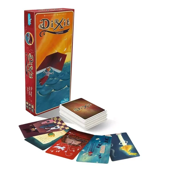 L’extension Dixit : Quest contient 84 cartes Images illustrées par Marie Cardouat pour renouveler vos parties de Dixit. Ces cartes peuvent être mélangées avec les anciennes ou les remplacer.