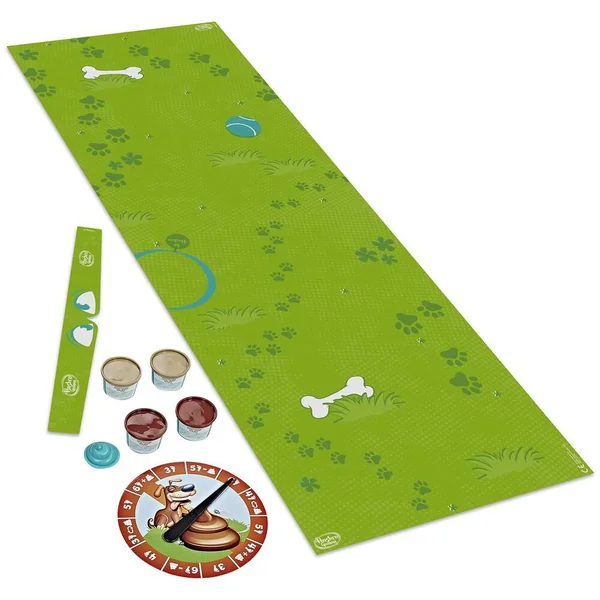 Grâce à la pâte à modeler et au moule, réalise des crottes à disposer sur le tapis de jeu ! Bande-toi les yeux et suis les instructions de la roulette pour te déplacer sur le tapis piégé. Attention à ne pas marcher dans les crottes ! De 1 à 4 joueurs.