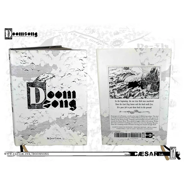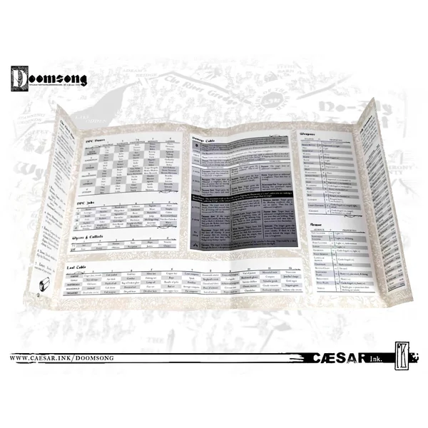 Le livre de base de Doomsong (300 pages) est un somptueux ouvrage relié en simili-cuir embossé, avec finition thermo :