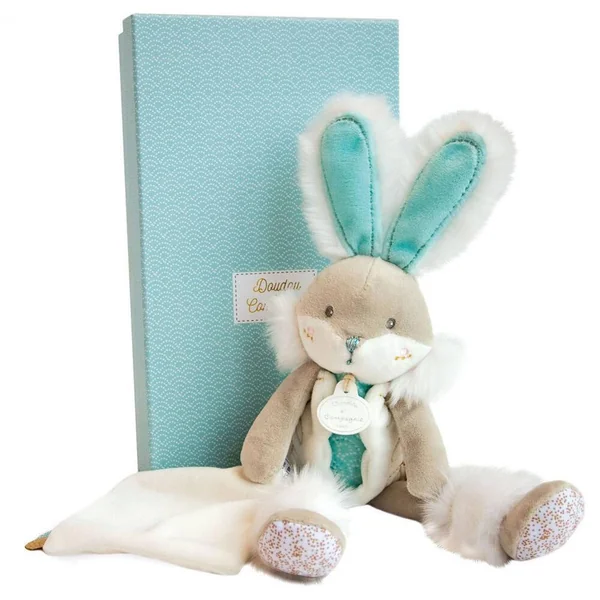 Beaucoup de raffinement et de tendresse pour cet adorable pantin. Avec sa jolie petite frimousse, son poil tout doux et ses fines touches de doré, ce lapin couleur amande tout droit sorti d’un joli rêve ravira tous les petits. Présenté dans une belle boîte, c’est le cadeau idéal dès la naissance. Lavable à 30°. Inédit ! Ce produit bénéficie de LA GARANTIE DOUDOU. Grâce à son numéro unique, Doudou perdu est vite retrouvé! Enregistrez votre Doudou et découvrez toutes les garanties sur le site doudouetcompagnie.com