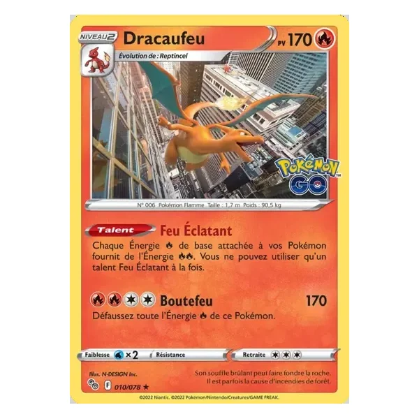 Découvrez Dracaufeu (pgo010), une carte Pokémon de l’extension Pokémon GO, provenant du bloc Sword & Shield Era. Idéale pour compléter votre collection, cette carte Holo Rare plaira autant aux collectionneurs qu’aux joueurs.
