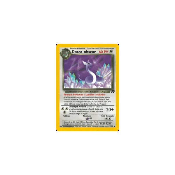 Découvrez Draco (tr033), une carte Pokémon de l’extension Team Rocket, provenant du bloc Wizards. Idéale pour compléter votre collection, cette carte Peu Commune plaira autant aux collectionneurs qu’aux joueurs.