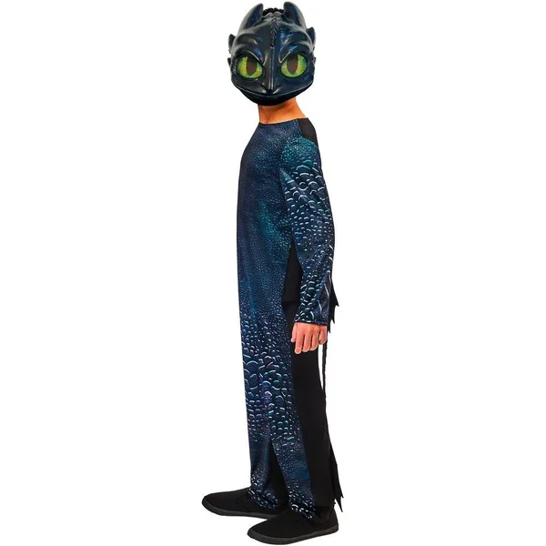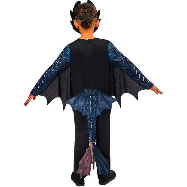Une combinaison imprimée en jersey avec ailes intégrées au niveau des manches et queue détachable. Un masque en plastique de Croc-Mou avec attache élastique et fermeture velcro