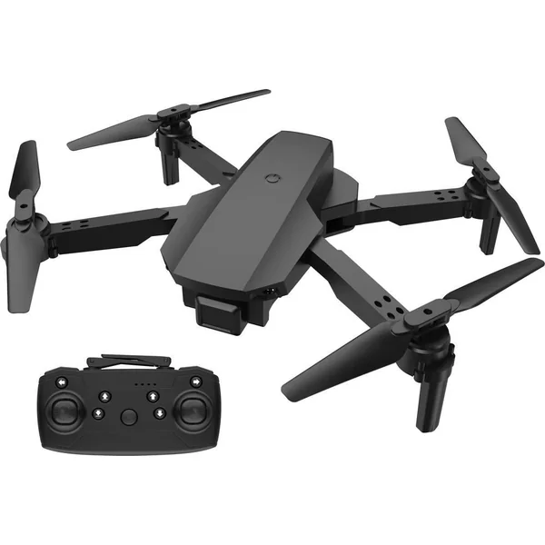 Le coffret comprend un drone pliable, ainsi que divers accessoires tels qu’une batterie rechargeable, un câble USB et une radiocommande.