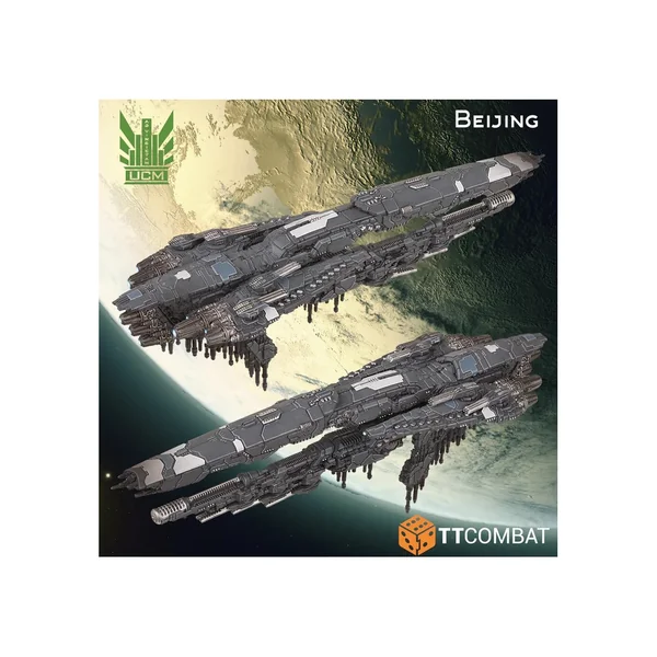La classe Beijing est un vaisseau extrêmement résistant qui dispose d’une puissance de feu considérable, à savoir neuf moteurs de masse UF-6400 dans trois tourelles, douze moteurs de masse UF-4200 dans quatre tourelles et un laser Cobra, sans oublier des dizaines de baies de missiles et des bancs de lasers de défense ponctuelle. C’est actuellement l’un des commandements les plus populaires auprès des amiraux de l’UCMF, et pour cause : peu de navires de l’UCM en service actif sont aussi efficaces pour anéantir un ennemi que le redoutable Pékin. La plupart des cuirassés de l’UCMF sont entourés de récits de leurs actes illustres, leurs noms sont gravés dans la conscience collective des citoyens coloniaux et cette classe ne manque pas de légendes.