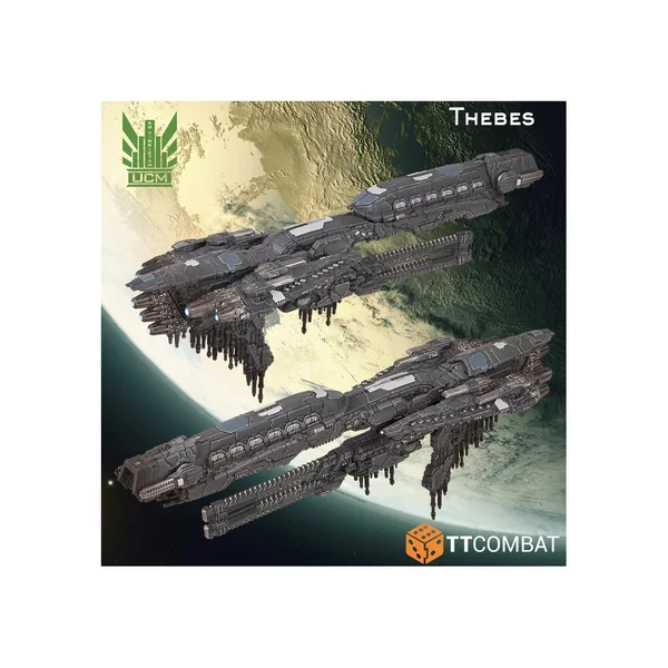 Le Thebes est la dernière classe de super cuirassés à entrer en service dans l’UCMF. Le Bureau de conception navale s’est inspiré de la superstructure et de la charge d’armement du Carthage, mais a reconfiguré le gaillard d’avant de sa baie de lancement caverneuse pour les déploiements en surface, en plus d’y installer une paire de tourelles UF-6400. De là, le Thebes peut lancer des atterrisseurs en vrac, des nacelles de largage et des torpilles d’abordage. Cette classe a déjà acquis la réputation d’être un déploiement en or pour les troupes de débarquement, car il est peu probable qu’elles périssent à bord du vaisseau avant de tomber sur la planète.