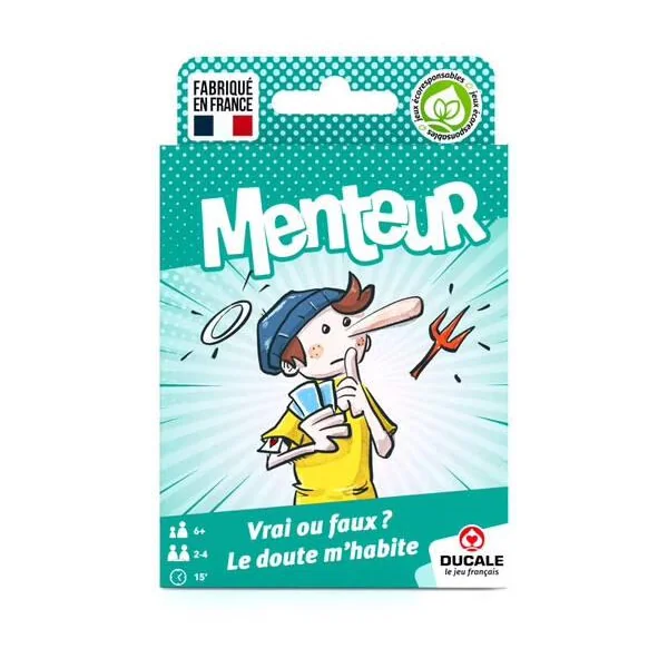 Retrouvez le célèbre jeu de carte du Menteur dans une version revisitée, spécialement adapté pour les enfants. Ici, mentir est enfin autorisé et les enfants auront grand plaisir à mentir pour obtenir le plus de bonbons. Saurez-vous déterminer si votre adversaire ment ou pas ? Ce jeu est idéal pour apprendre le bluff et la stratégie aux enfants, de manière ludique. Les cartes aux dessins gourmands sont spécialement concues pour apprendre et jouer facilement. Alors, sucette ou réglisse ?