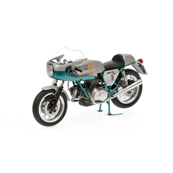 DUCATI 750 SUPER SPORT – 1977 – SILVER/BLUE 1/12e – Métal Référence : 122120750 EAN : 4012138082540 |