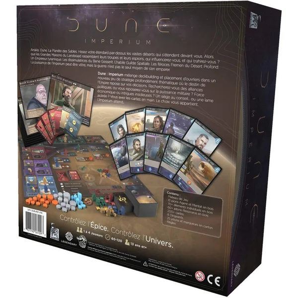 Vous pouvez devenir un puissance militaire, capable de déployer plus de troupes que vos adversaires, ou vous pouvez acquérir des cartes vous ouvrant les portes des quatre factions politiques représentées dans le jeu : l’Empereur, la Guilde Spatiale, l’Ordre du Bene Gesserit et bien sûr, les Fremens. Battez vos adversaires au combat, manipulez habilement les factions politiques, et obtenez les précieuses cartes L’épice doit couler pour mener votre Maison à la victoire !