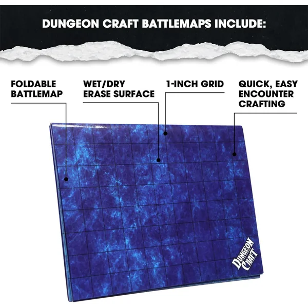 Tapis de jeu souple utilisable avec n’importe quel jeu de rôle. Il mesure 61 x 83 cm avec des carrés de 2,5 cm, correspondant aux caractéristiques habituelles des produits Dungeon Craft.