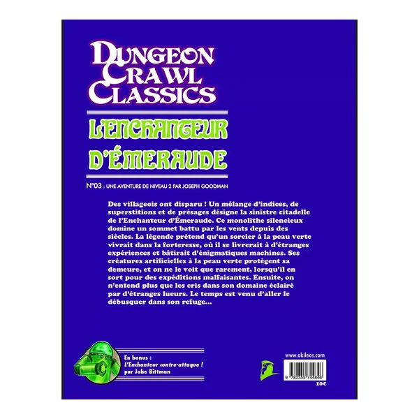 Dungeon Crawl Classics – Numéro 3 : L’Enchanteur d’Émeraude est un scénario pour le jeu de rôle Dungeon Crawl Classics, édité par Akileos utilisant le système d20 system.