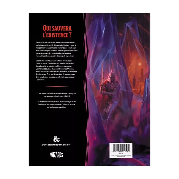 Vecna – Au Seuil du Néant pour le jeu de rôle Dungeons & Dragons 5 est une aventure pour personnages de niveau 10 à 20.