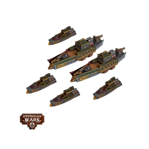 Les navires de guerre chinois sont les plus nombreux de la marine de l’Empire. Leurs canons à flammes chimiques montés sur la proue, connus sous le nom de Huoqiang, les rendent redoutables dans n’importe quel conflit et les navires chinois forment le noyau de la plupart des flottes de combat de l’Empire. Les croiseurs chinois sont équipés des mortels Huoqiang ainsi que d’un mélange de canons lourds et de roquettes. Les équipages des frégates de Shanghai sont très entraînés à travailler en grandes formations et peuvent coordonner des attaques avec un effet dévastateur. Grâce à l’abondance de main-d’œuvre dont ils disposent, les chantiers navals chinois sont capables de produire un grand nombre de croiseurs et de frégates, ce qui leur confère une position dominante dans les activités navales, que seuls les navires d’élite du Japon peuvent contrer.