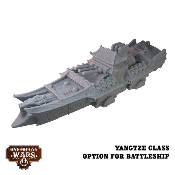 Les navires de guerre de la Chine sont les plus nombreux de la marine de l’Empire. Leurs canons à flammes chimiques montés à la proue, connus sous le nom de Huoqiang, les rendent redoutables dans n’importe quel conflit et les navires chinois forment le noyau de la plupart des flottes de combat de l’Empire. Le cuirassé de classe Ning Jing est un navire polyvalent et, comme beaucoup de navires chinois, il a tendance à préférer les salves de roquettes aux batteries de canons lourds plus traditionnelles. Les équipages sont tous bien entraînés à l’utilisation de ces armes et une fois qu’une cible a été marquée par une première salve, les autres manquent rarement leur cible. Développés dans les mêmes chantiers navals, les navires de commandement Yangtze sont une classe sœur plus rare. Le Yangtze renonce à deux des tourelles lourdes et monte à la place un trio de munitions de haut calibre et à long canon, connues sous le nom d’Erlang Shen, qui peuvent paralyser les navires ennemis et les défenses côtières.