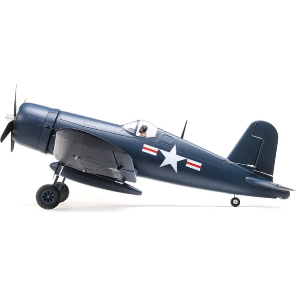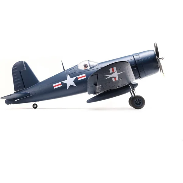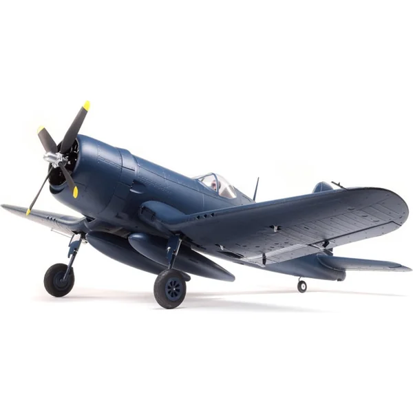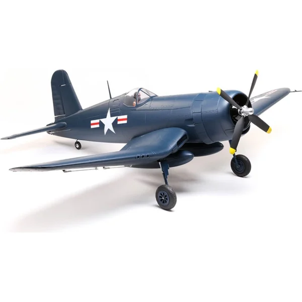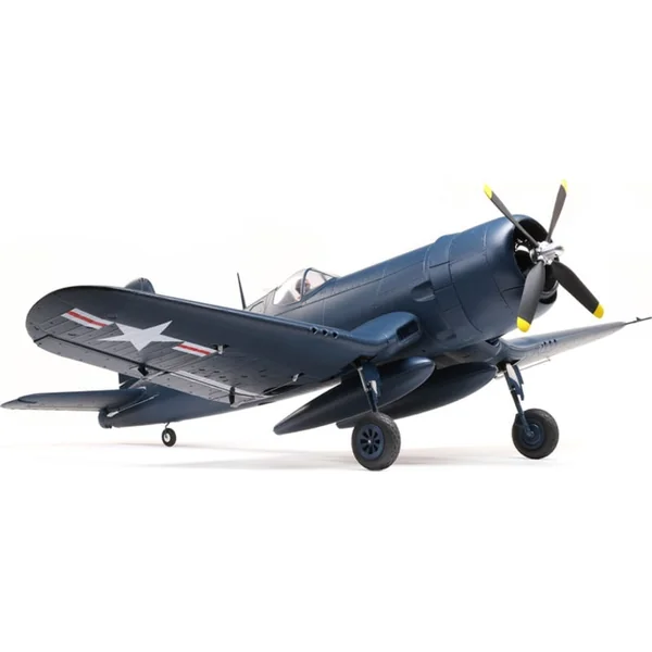 Modèle RC d’avion E-flite F4U-4 Corsair avec un nouveau régulateur Avian 70A Smart Lite pour LiPo 3-4S. Train d’atterrissage électrique rétractable et volets de sustentation, possibilité de performance accrue avec LiPo 4S propulsant le modèle dans une catégorie supérieure. Montage facile, 6 servos, décoration prête à l’emploi, hélice à 4 pales.