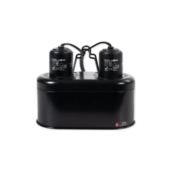 Lampe double pour terrarium avec douilles en céramique et réflecteur intégré. La couche en aluminium hautement polie du réflecteur augmente l’intensité du rayonnement lumineux, de la sortie UVB et UVA.