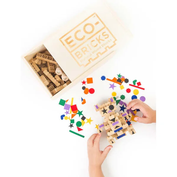 Jeu de construction en bois ECO-BRICKS Color contient 90 pièces en matériau naturel et biodégradable. Ce jeu de construction est une excellente alternative aux pièces en plastique, il est compatible avec la plupart des autres grandes marques de pièces à emboîtement. Ce jeu divertit les enfants tout en étant respectueux de l’environnement, ses pièces sont certifiées FSC. Les couleurs utilisées sont non toxiques et à base d’eau.