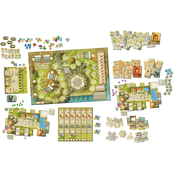 - plus de 130 jetons en bois (ânes, ouvriers, jetons de marchandises, marqueurs de récompenses, marqueur d’ordre de tour)