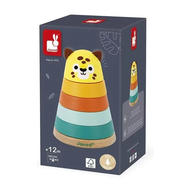 Partez à la rencontre de notre magnifique jaguar! Tout en suivant les couleurs inscrites sur la tige en bois, votre enfant devra empiler les 5 pièces de tailles différentes pour reconstituer le jaguar. Idéal pour développer sa motricité fine et se familiariser avec les couleurs. Jouet en bois et peinture à l’eau. Jouet d’éveil pour les enfants à partir de 12 mois. Pour créer cette gamme nous avons pris la direction des tropiques à la recherche d’évasion, d’exotisme et de contraste. Pour illustrer au mieux cette nature sauvage, nous avons réuni des animaux joyeux aux couleurs vitaminées et des éléments végétaux aux teintes apaisantes.