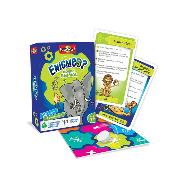 Avec Enigmes – Monde animal, tentez d’être le plus rapide à deviner les animaux qui se cachent derrière 5 indices instructifs et amusants.Faites preuve d’adresse en lançant le jeton sur le plateau pour tenter de gagner plus de cartes Enigmes – Monde animal !