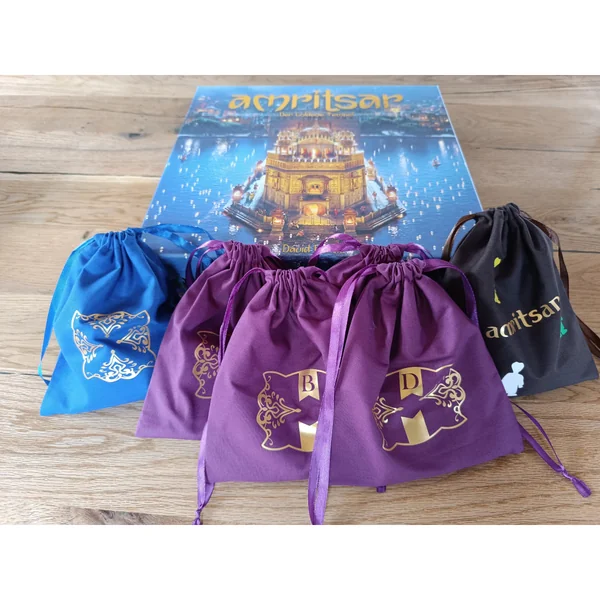 Différents ensembles de sacs pour le jeu de plateau Amritsar sont disponibles.