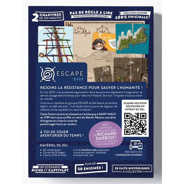 Vous devez résoudre plus de 30 énigmes dans le but de sauver le professeur Constant et de retrouver la Déclaration des droits de l’homme et du citoyen. Vous allez explorer le Saint-Malo de 1789 et rencontrer de nombreux personnages durant l’aventure, d’un prêtre un peu trop bavard à un pêcheur aigri, en passant par la capitaine d’un bateau de pirates déjantés. Une véritable intrigue a été écrite autour des énigmes, elle s’inscrit dans un univers plus vaste, laissant la possibilité d’écrire de nombreuses histoires dans cet ensemble cohérent… . Une immersion sonore forte : 45 min de musiques orignales 1H d’ambiance et de bruitages 24 personnages interprétés par des comédiens et commédiennes professionnels. . Une interface de jeu sur mesure et intuitive.