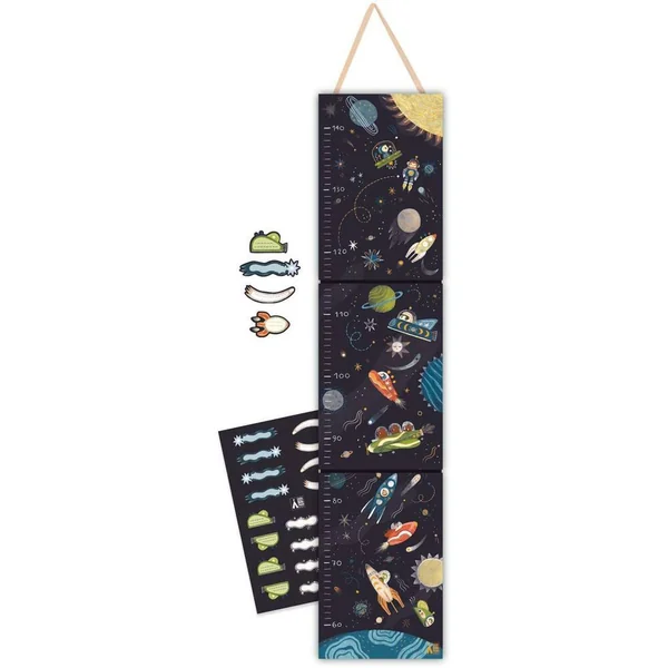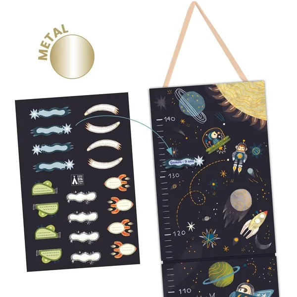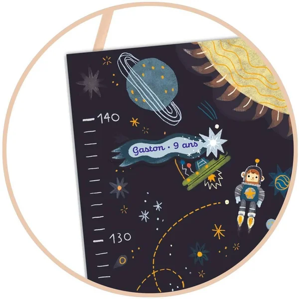 Une grande toise murale avec de nombreux stickers repositionnables sur le thème de l’espace. Un bel objet de décoration idéal pour mesurer les enfants au fil du temps (jusqu’à 1,40 m). Et lorsque l’enfant est grand, on la range dans sa jolie boite pour un tendre souvenir.