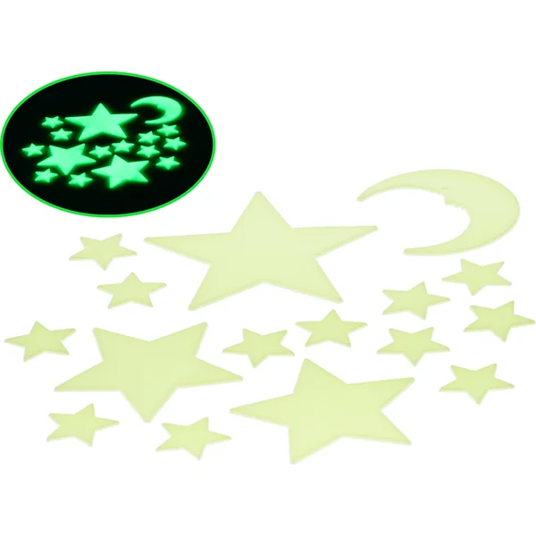 Aimez-vous regarder le ciel et observer les étoiles ? Collez ces autocollants au plafond ou sur le mur et créez votre ciel nocturne. Les étoiles lumineuses dans l’obscurité mesurent entre 4 et 12 cm. L’emballage contient 15 pièces. Convient aux enfants à partir de 3 ans.